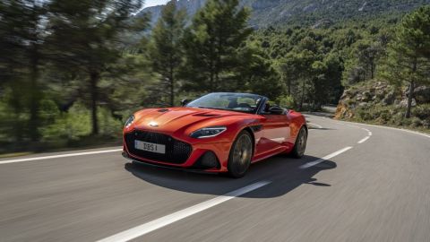 The DBS Superleggera was already the best looking car on sale, but the Volante kicks it off the catwalk. Sinewy and shrink-wrapped, it bulges in all the right places. Unlike some supercars, the Aston doesn’t resort to aggressive aero appendages. It’s far too cultivated for that. Nonetheless, details such as the ‘curlicues’ behind the front wheels, double diffuser and ‘Aeroblade II’ rear spoiler deliver real downforce; a total of 177kg at Vmax is just 3kg less than the coupe.